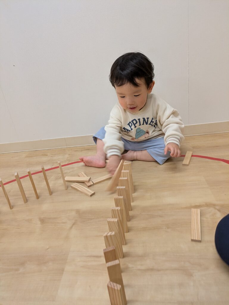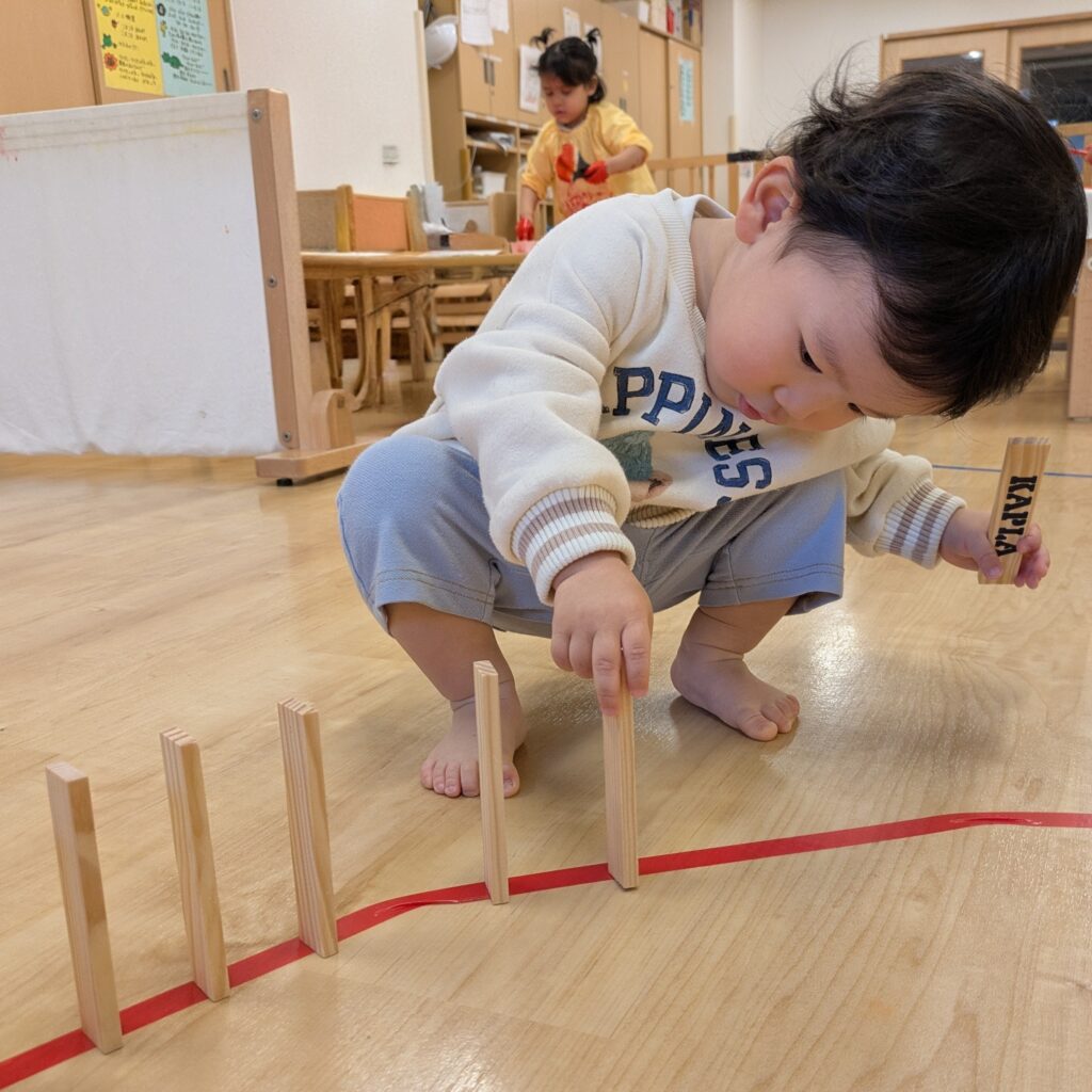 初めての「できた!❤️‍🔥」がとても自信になり、その後は自分でできる喜びをたっぷりと感じながら、「線の上に並べてみるね」と工夫したりして、想像を広げながら楽しむことができ、子どもにとって豊かな経験となりました😊